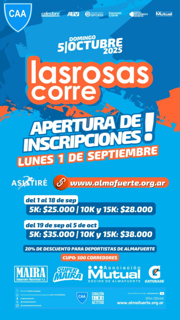Cierre de inscripciones: Domingo 5 de octubre (o hasta completar cupos)